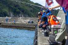 英会話と釣りを楽しむイベント「FISH Nishiizu」が9月21日、仁科漁港(西伊豆町仁科)で開かれた。西伊豆町で英語に触れる機会を提供する「CHAT Nishiizu(チャットにしいず)」と、漁港の釣り場予約サービス「海釣りGO」のコラボ企画で、日本人と外国人を交えた賀茂地域の在住者14人が参加した。