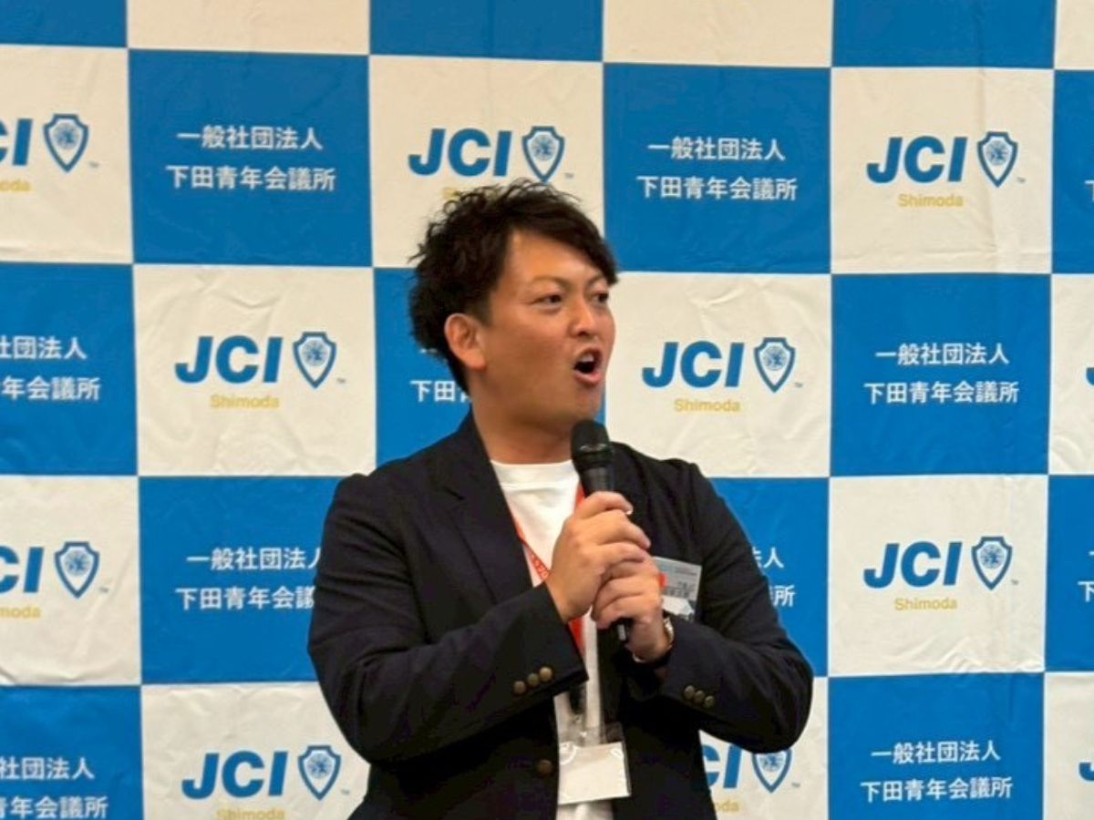 下田青年会議所の内田幸太朗理事長のあいさつ(関連画像4枚https://shimoda.keizai.biz/headline/945/)