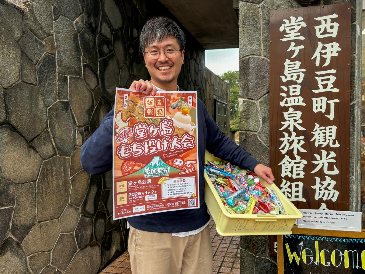 西伊豆町観光協会が1月2日、新年を祝う恒例イベント「新春!堂ヶ島もち投げ大会」を堂ヶ島公園(西伊豆町仁科)で開く。