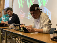 河津町の特産品のワサビの魅力をより多くの人に知ってもらおうと企画された「わさびすりおろし早食い世界大会(World Wasabi Winner)」が3月21日、河津桜観光交流館(河津町笹原)2階で初めて開かれた。