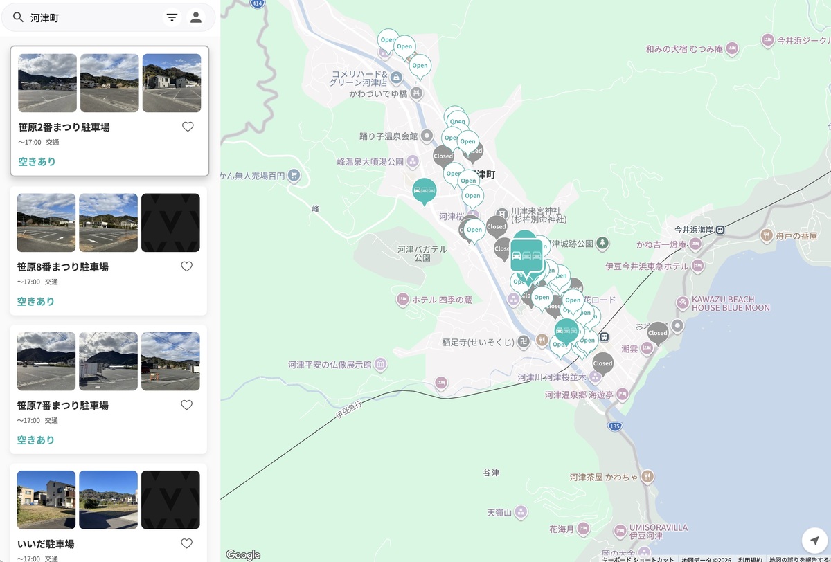 「河津桜まつり」の駐車場混雑が分かるウェブサイト画面