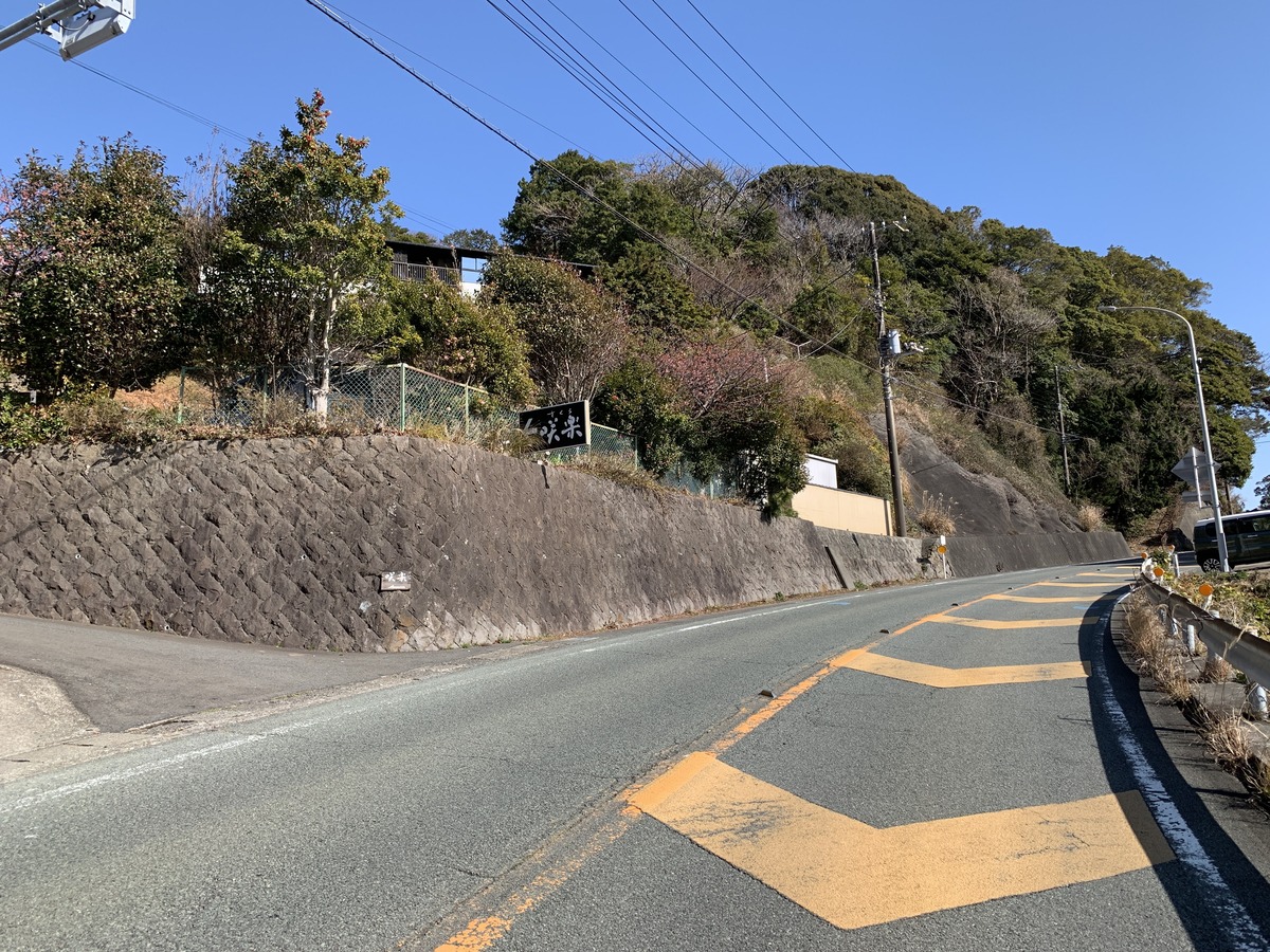 桐のかほり咲楽の入口は国道に面する 「咲楽」の看板が目印