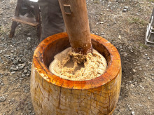 首都圏に住む人たちが松崎町で稲作を通じた地域学習や交流を行う「NH田んぼプロジェクト」が12月13日、収穫した米60キロを松崎町に寄贈した。