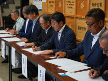 西伊豆町は10月1日、伊豆漁業協同組合(西伊豆町仁科・田子・安良里)、西伊豆町観光協会、ウミゴー(西伊豆町宇久須)、日本さかな専門学校(神奈川県三浦市)、西伊豆産地直売企業組合、日本釣振興会静岡県支部の計8者と「西伊豆町海業地域づくり推進連携協定」を締結した。