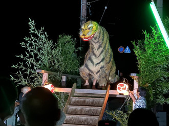 静岡県指定無形民俗文化財にも指定されている「小稲の虎舞(こいなのとらまい)」が10月5日、南伊豆町小稲の浜辺で奉納された。