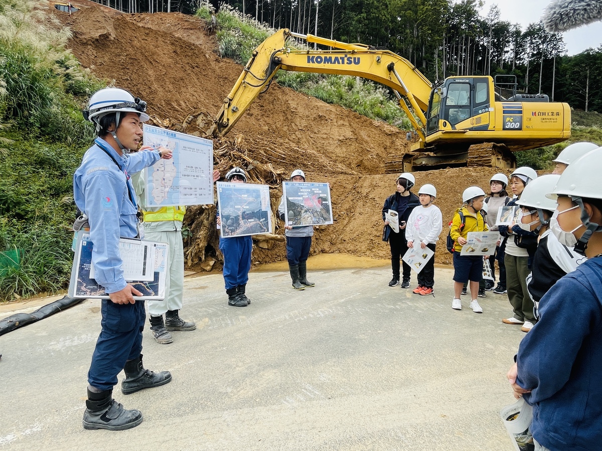 建設が進む伊豆縦貫自動車道の工事の様子を実際に見て理解してもらおうと10月25日、「伊豆縦貫自動車道・親子現場見学会」が開かれた。