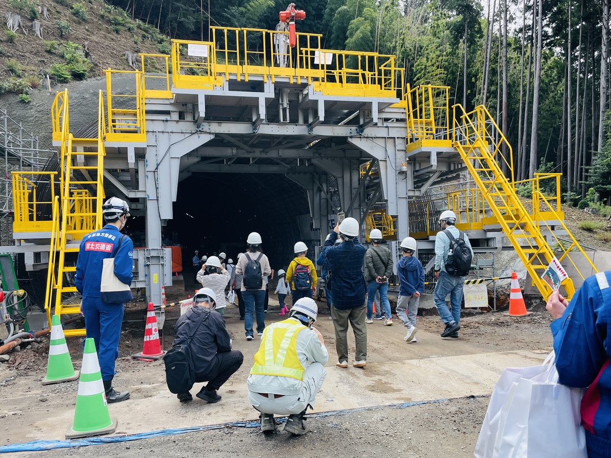 建設が進む伊豆縦貫自動車道の工事の様子を実際に見て理解してもらおうと10月25日、「伊豆縦貫自動車道・親子現場見学会」が開かれた。