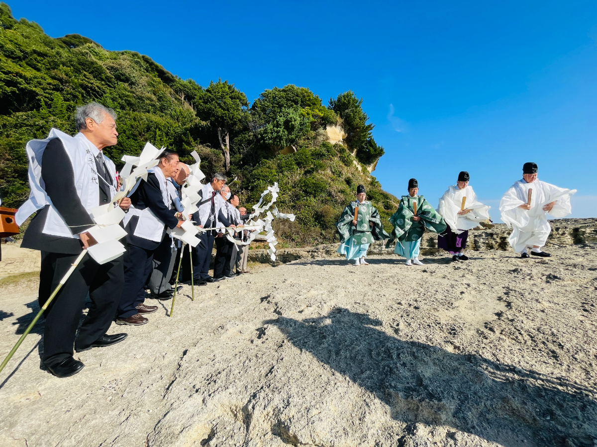 海岸を一望する岩場の上での神事(2)