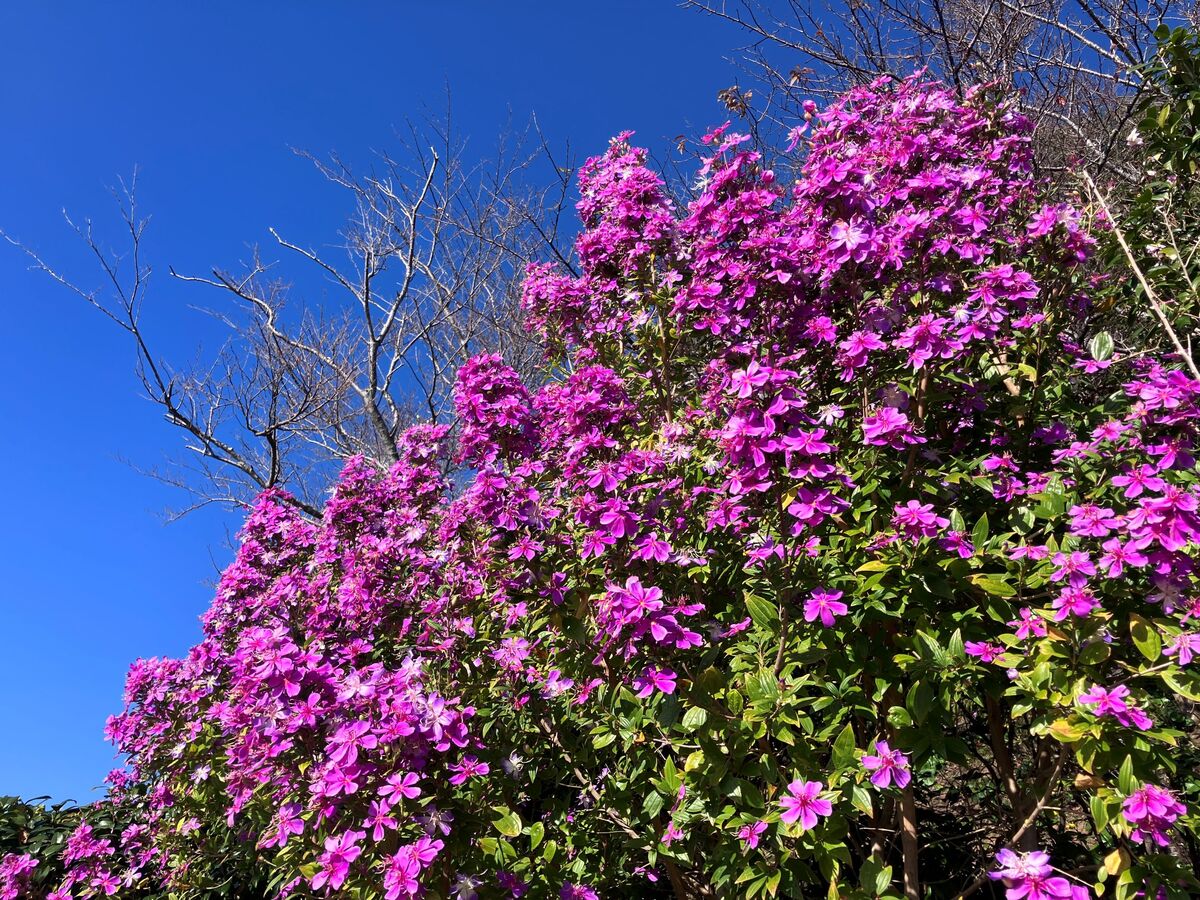 下田の景色を一望できる展望台を備える寝姿山自然公園(下田市東本郷)で現在、リトルエンジェル(サンショクノボタン)が見頃を迎えている。