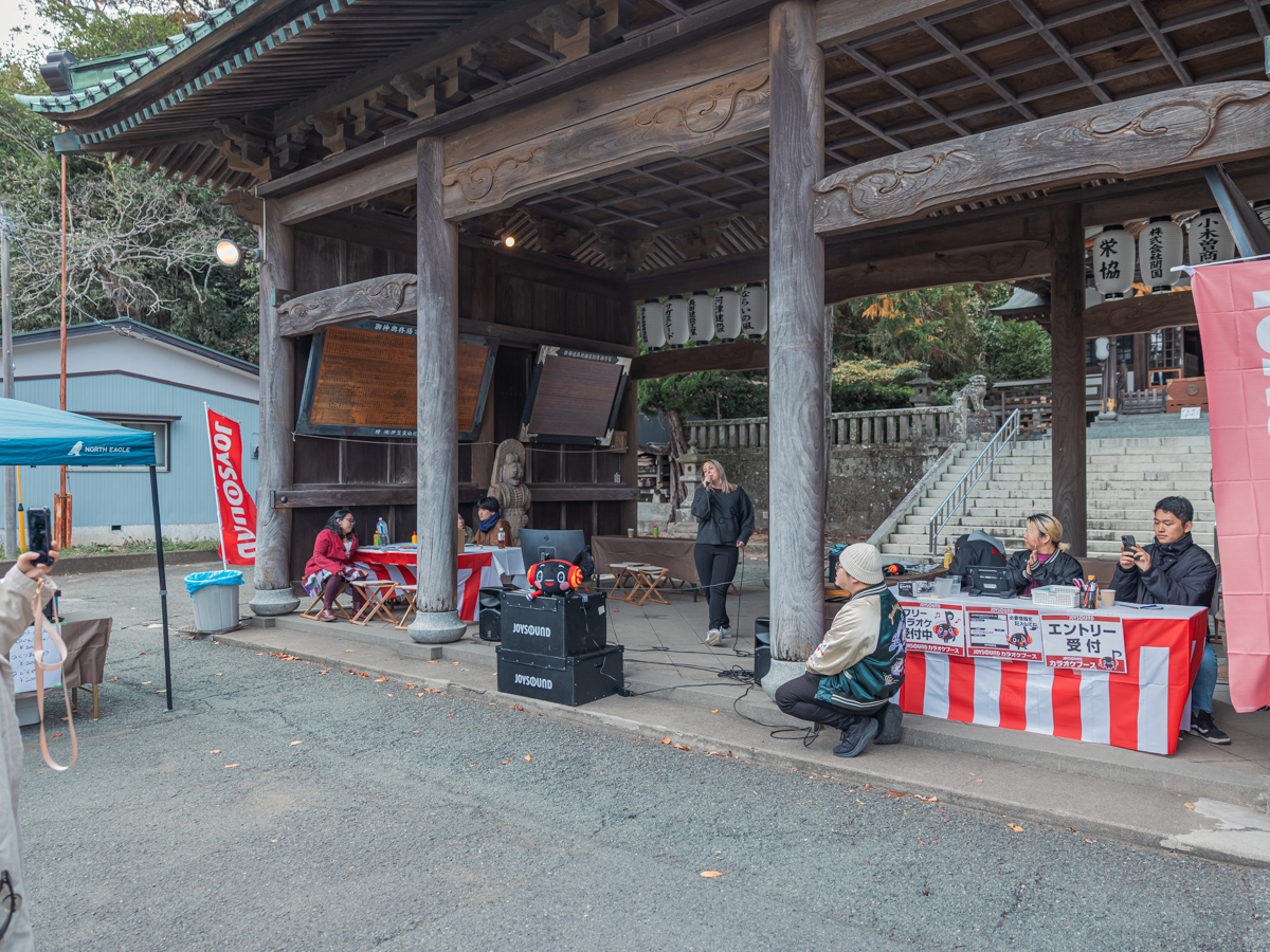 下田市内で11月いっぱい開催されている国際文化交流プログラム「TADAIMA 2025」の企画の一つとして11月23日、「JOYSOUND カラオケ大会」が下田八幡神社(下田市一丁目)で開かれた。