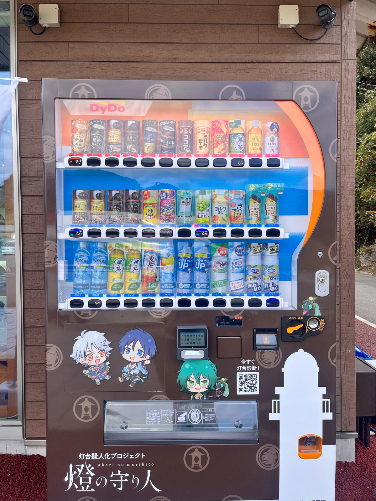 全国の灯台を擬人化したプロジェクト「燈(あかり)の守り人」とコラボレーションした「おしゃべり自動販売機」の除幕式が11月22日、石廊崎オーシャンパーク(南伊豆町石廊崎)駐車場で開かれた。