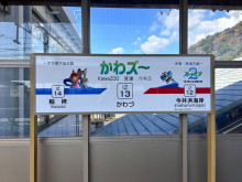 伊豆急行・河津駅の駅名看板が12月2日、期間限定で「かわズ~駅」に変更された。