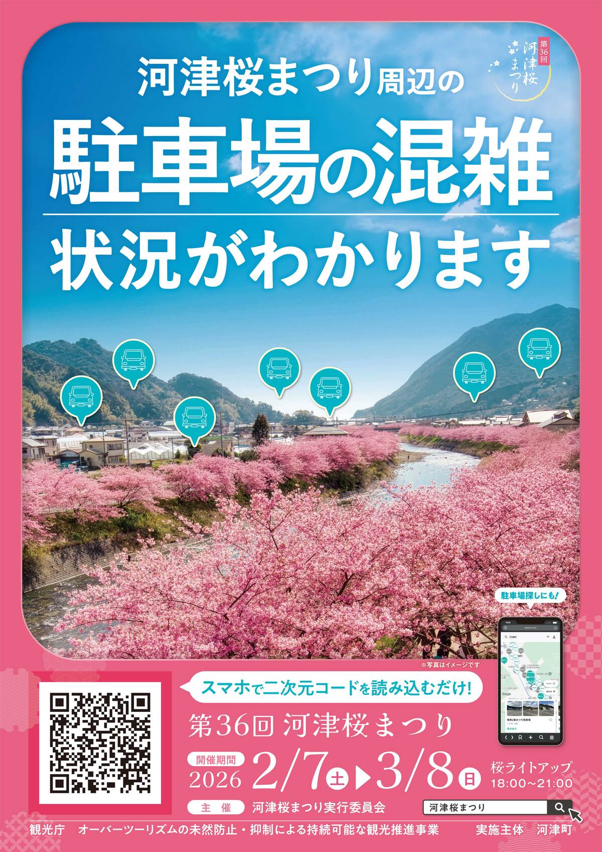 「河津桜まつり」駐車場混雑を可視化ポスター