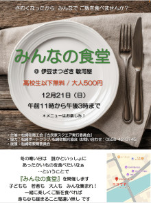 地域食材を生かした料理を囲む交流の場「みんなの食堂」が12月21日、松崎町の歴史的建造物「駿河屋」(松崎町松崎)で開かれる。