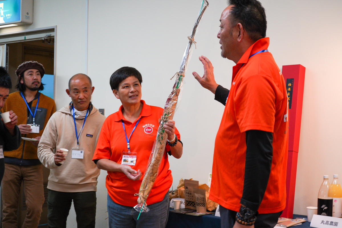 エリアワークショップで商品説明をする「田口自然薯ファーム」の田口さん