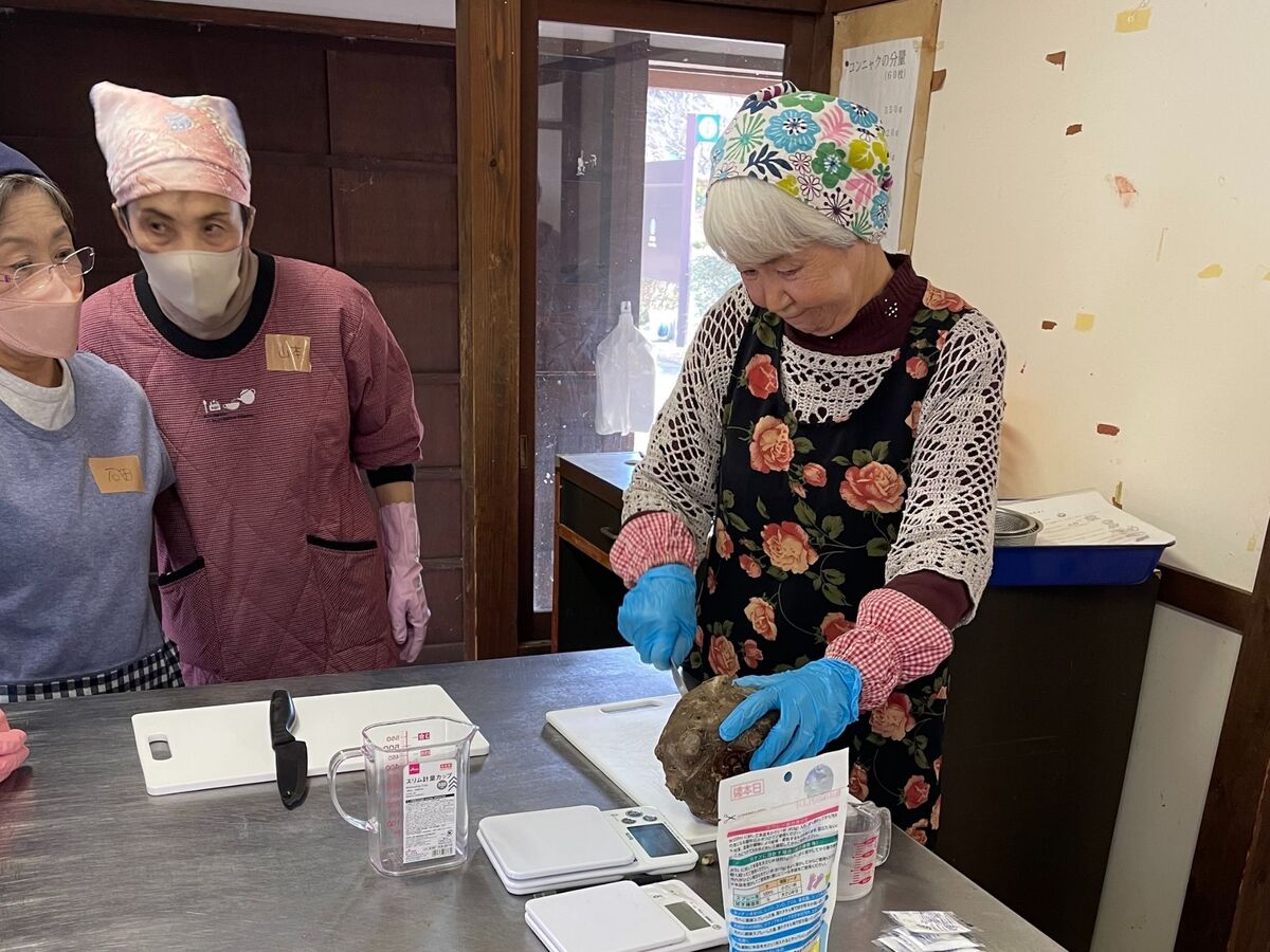 グリーンツーリズム体験事業「こんにゃく作り体験会」が12月18日、道の駅「花の三聖苑伊豆松崎」 (松崎町大澤)で行われた。
