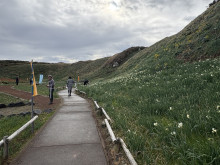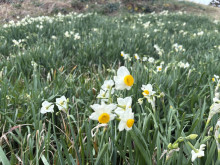 下田市の爪木崎海岸(須崎)で現在、今年で60回目を迎える「水仙まつり」が行われている。