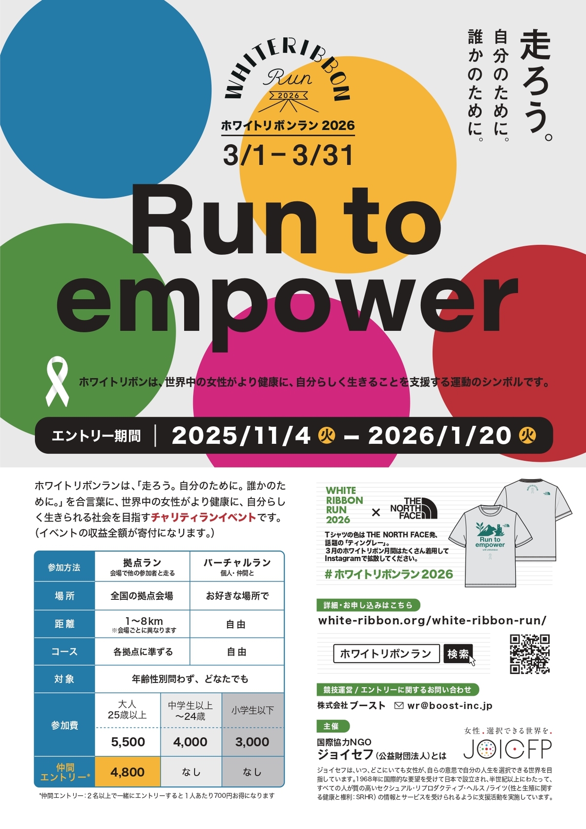 世界中の女性がより健康に、自分らしく生きることを支援するチャリティーマラソン「ホワイトリボンラン2026」が3月8日、まどが浜海遊公園(下田市柿崎)で開かれる。