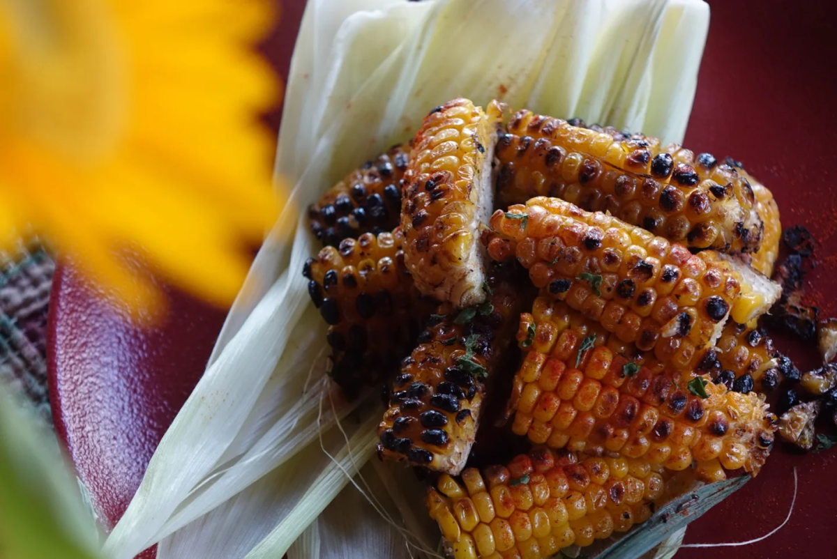 「クエビコ」の料理(1)、丸ごとトウモロコシのグリル