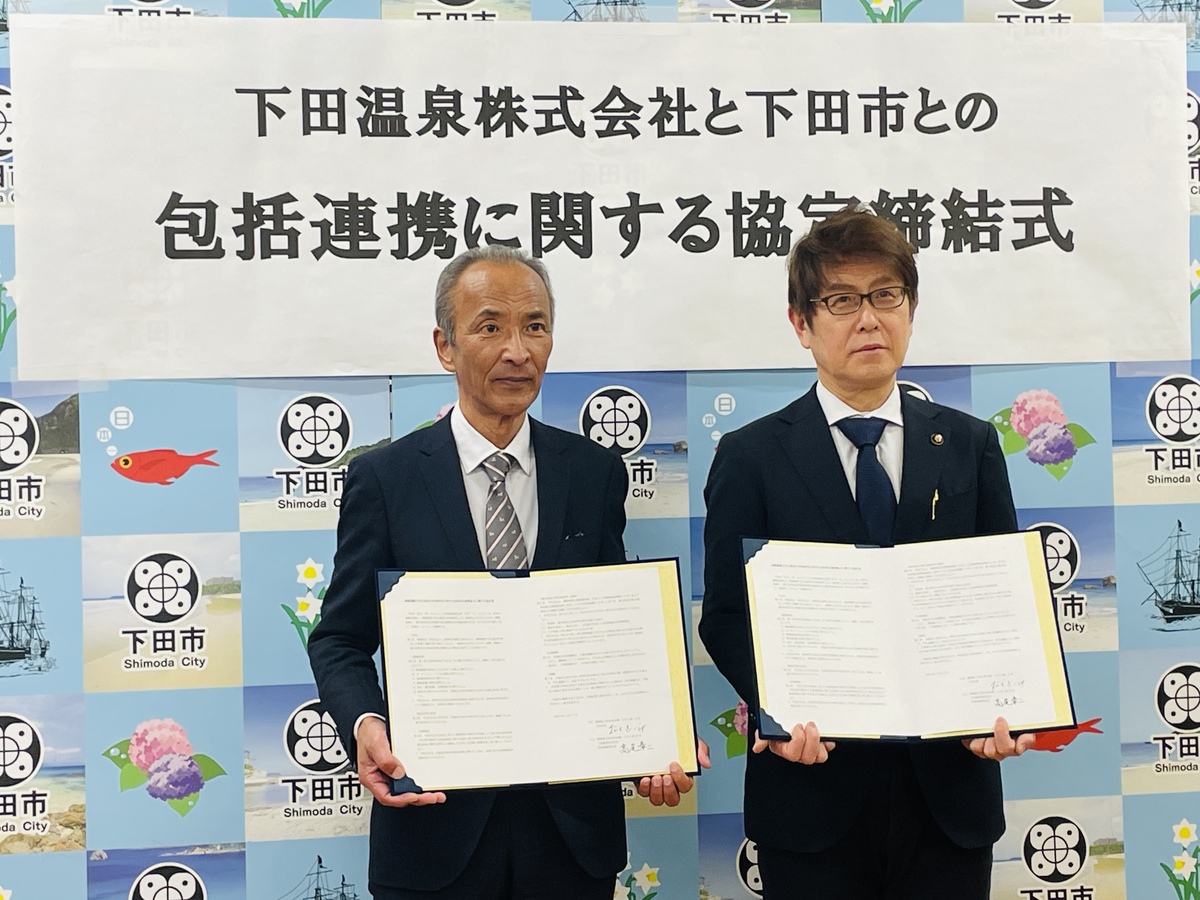 下田温泉株式会社と下田市は1月27日、地域活性化や市民サービス向上を目的とした「包括的連携に関する協定」を締結した。