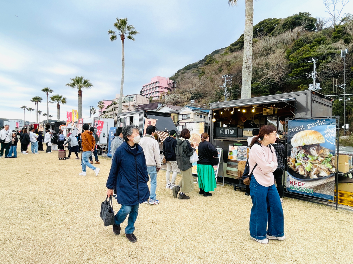 約40店がさまざまなグルメを提供する「みなとオアシス下田 キッチンカーフェスタ」が2月21日・22日、まどが浜海遊公園(下田市柿崎)で開かれた。