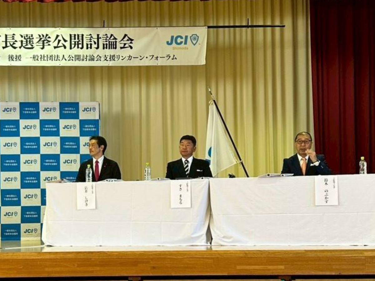 任期満了に伴う東伊豆町長選挙の3月15日の投開票を前に8日、東伊豆町長選挙公開討論会が稲取小学校(東伊豆町稲取)体育館で開かれた。