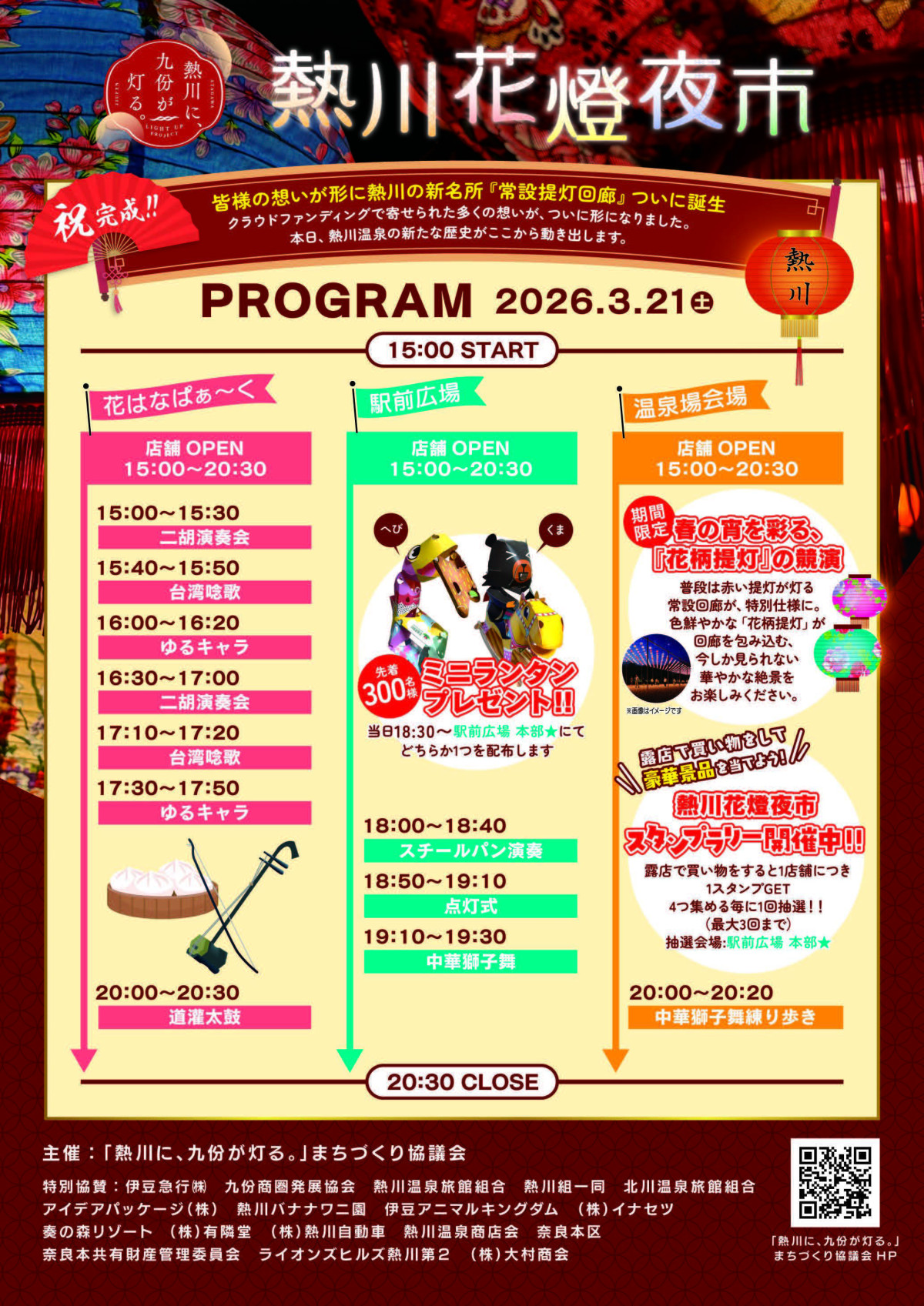 台湾ちょうちんの明かりで夜のにぎわい創出に取り組む熱川温泉で3月21日、多くの屋台グルメや台湾文化を体験できるアトラクションが集まる「熱川花燈(かとう)夜市」が開かれる。