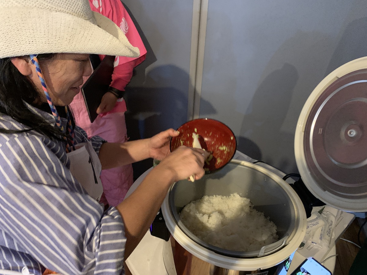 河津町の特産品のワサビの魅力をより多くの人に知ってもらおうと企画された「わさびすりおろし早食い世界大会(World Wasabi Winner)」が3月21日、河津桜観光交流館(河津町笹原)2階で初めて開かれた。