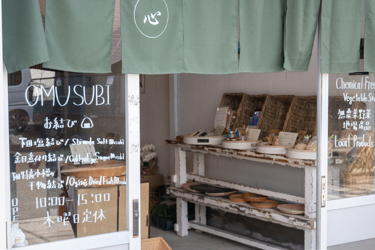 昔ながらの趣きを感じられる商店や銭湯が残る下田・大工町エリアに伊豆の地場産品を扱う「マルシェえん」(下田市三丁目)と、おむすび店「おむすび『心(こころ)』」(三丁目)が同じ建物に併設する形でオープンして、3月21日で1カ月がたった。