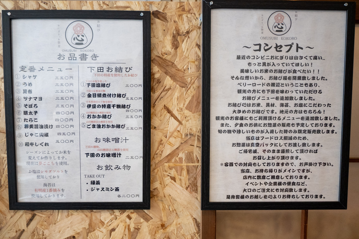 昔ながらの趣きを感じられる商店や銭湯が残る下田・大工町エリアに伊豆の地場産品を扱う「マルシェえん」(下田市三丁目)と、おむすび店「おむすび『心(こころ)』」(三丁目)が同じ建物に併設する形でオープンして、3月21日で1カ月がたった。