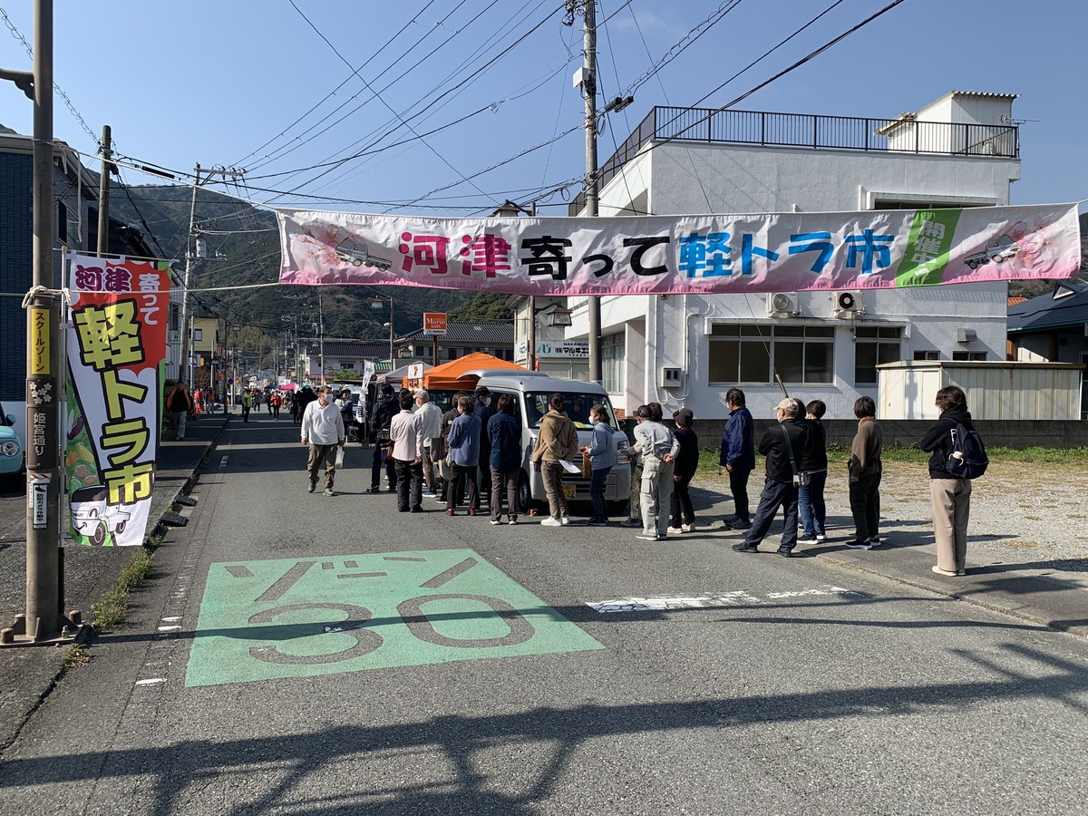 河津町中心部の「姫宮通り」(河津町笹原)で3月22日、歩行者天国イベント「河津寄って軽トラ市」が開催された 。