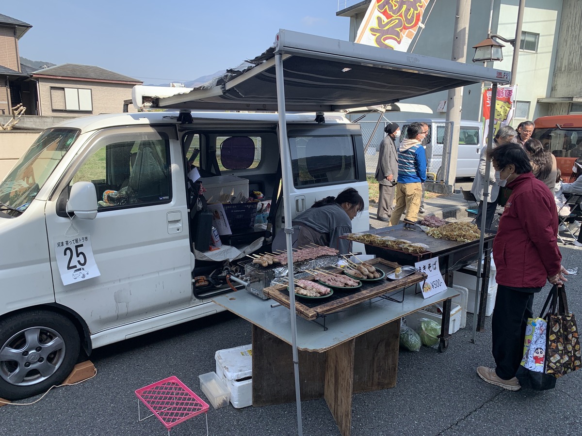 河津町中心部の「姫宮通り」(河津町笹原)で3月22日、歩行者天国イベント「河津寄って軽トラ市」が開催された 。