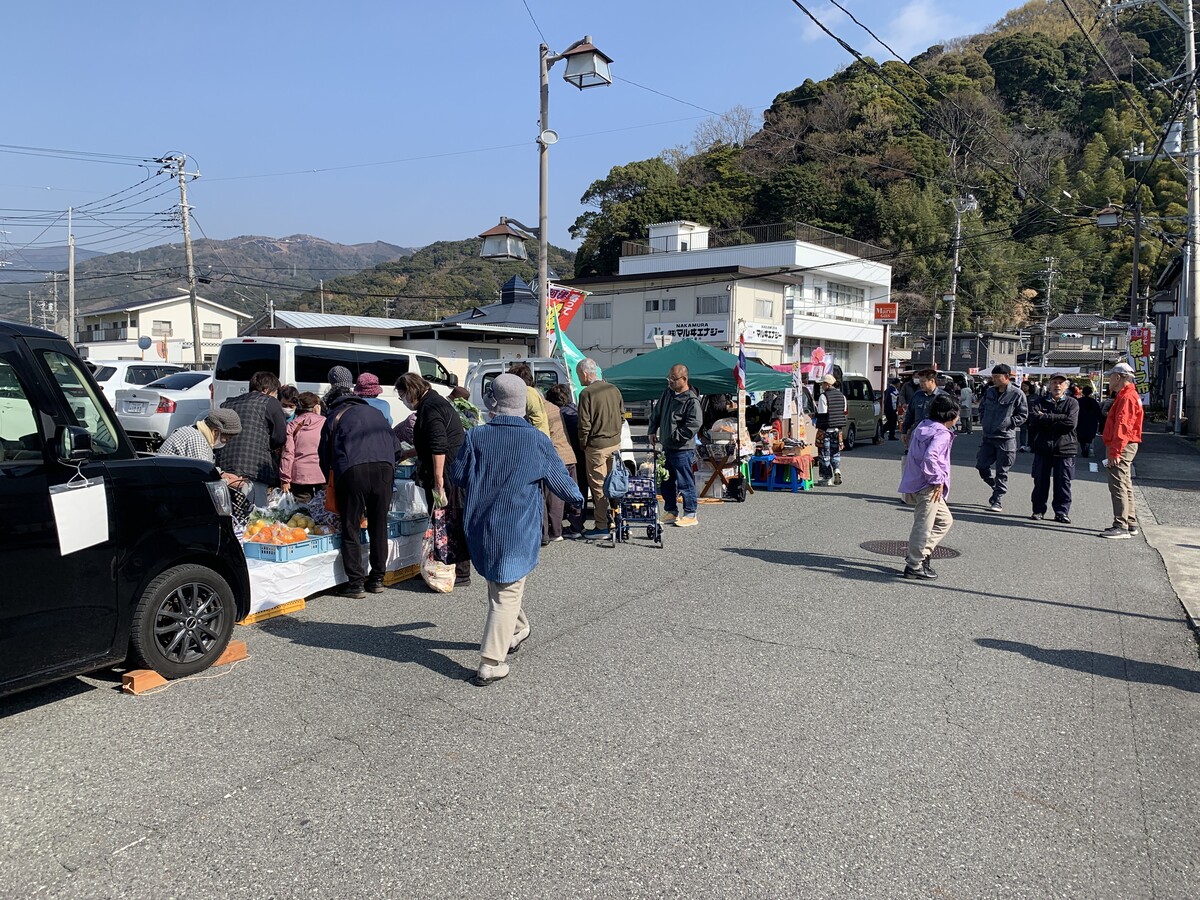河津町中心部の「姫宮通り」(河津町笹原)で3月22日、歩行者天国イベント「河津寄って軽トラ市」が開催された 。