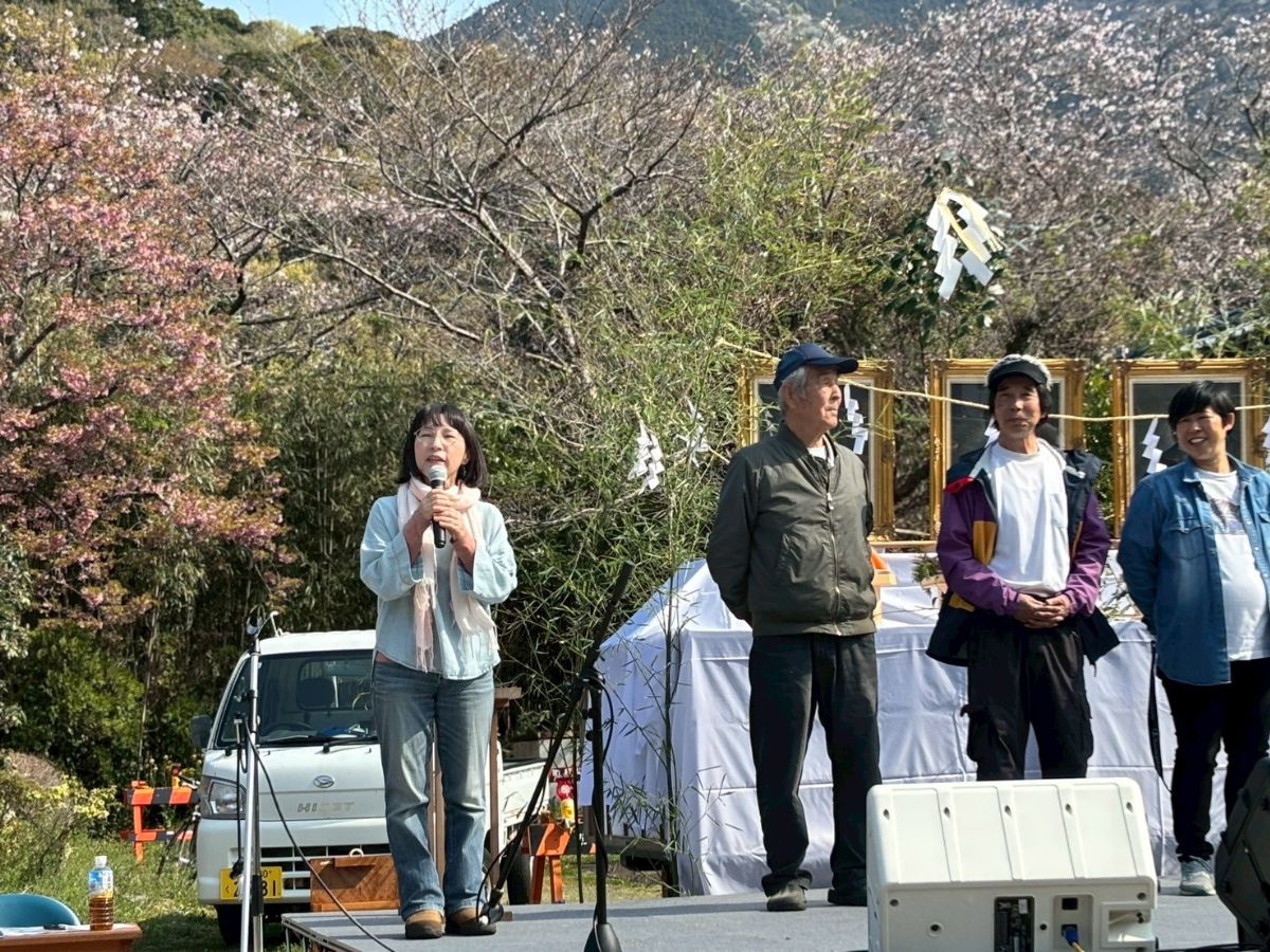 松崎三聖まつりステージでの「BLOOM MATSUZAKI」紹介の様子(1)