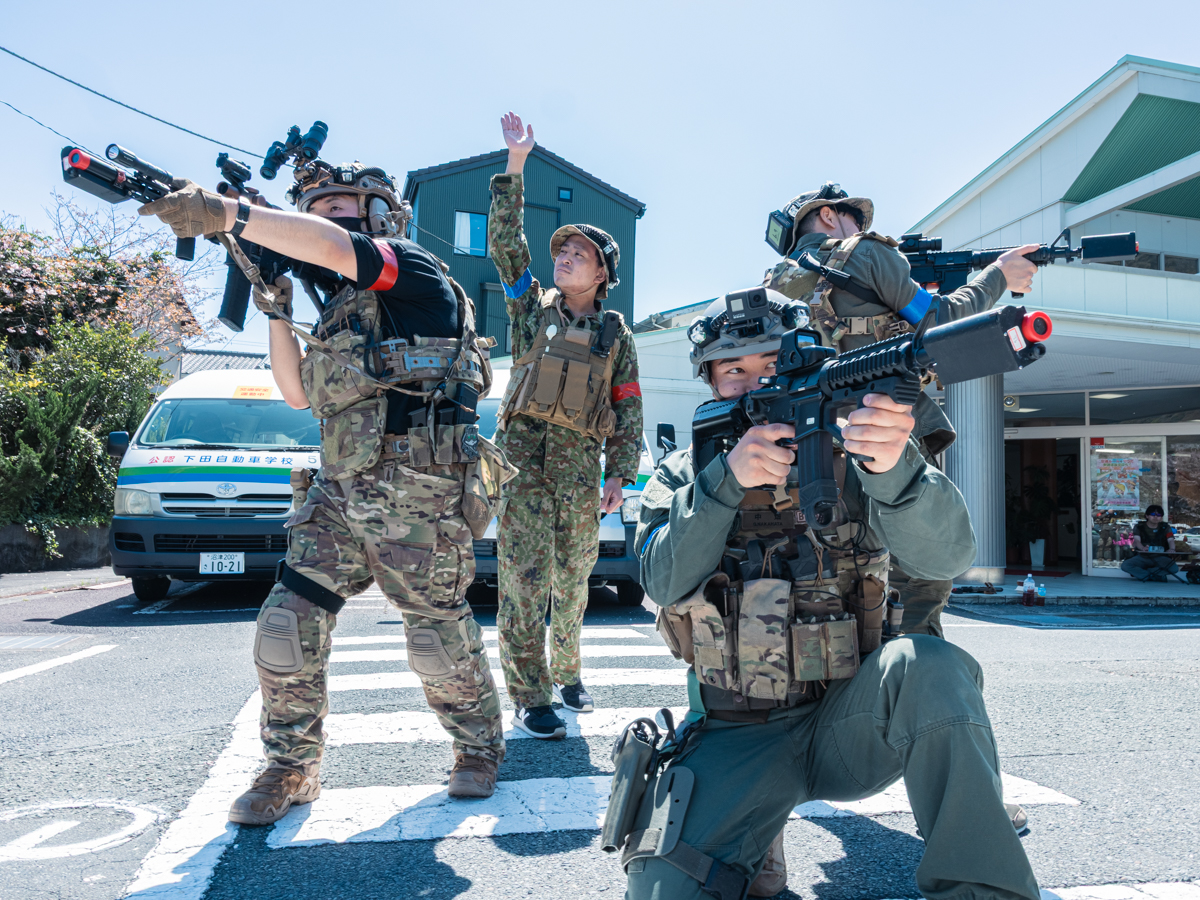 伊豆南エリア(賀茂地域)初となる本格的なサバイバルゲーム(通称=サバゲー)イベント「Izu-Mil(イズミリ)」が4月11日、下田自動車学校(下田市河内)で開かれた。