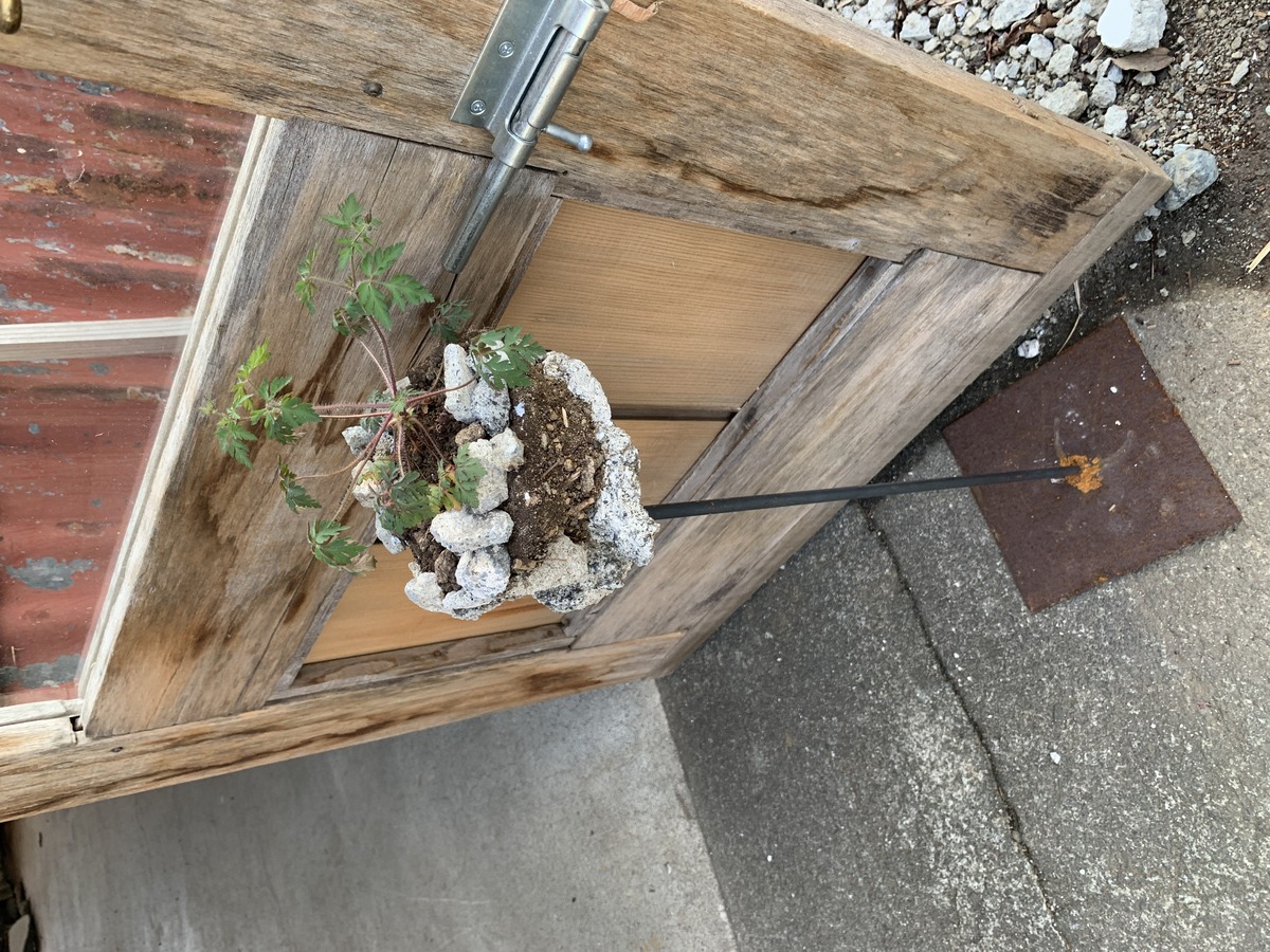 ギャラリー入り口に展示されている作品「がらと土に入ったヒメフウロ」