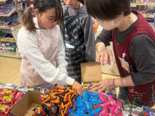 三島の駄菓子店でのジュニアスタッフ体験入店の様子