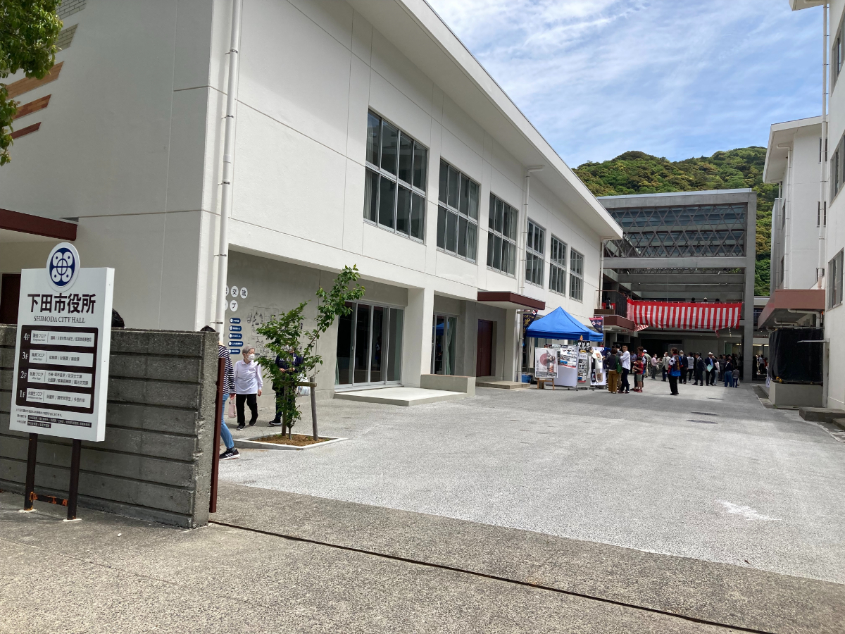 下田市が整備を進めていた新市役所庁舎が完成し、4月19日、落成記念式典が行われた。